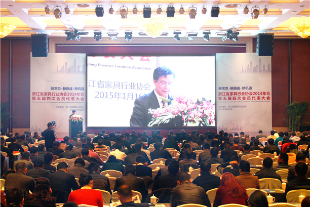 2015年1月16日,浙江省家具行業協會2014年會暨五屆四次會員代表大會在杭州隆重召開,全省500多位浙江家具企業家歡聚一堂,共襄盛舉。全體與會人員圍繞浙江家具行業如何適應新常態,直面新挑戰,迎接新機遇的突破之路深入探討。