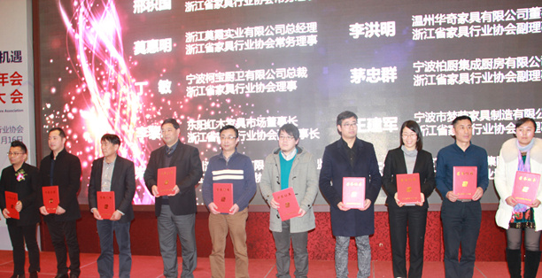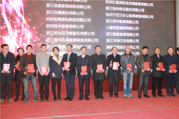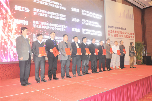 另外,大會還審議通過了《關于審議調整浙江省家具行業協會會費繳納標準的意見》,授予倪良正等10位企業家為“2014年度浙江家具行業杰出企業家”, 授予胡再貴等11位企業家為“2014年度浙江家具行業精英企業家”、授予邢積國等10位企業家為“2014年度浙江家具行業創新企業家”榮譽稱號;授予“歐宜風“等23家品牌家具為“浙商名家居品牌聯盟推薦產品”。另外,浙江省家具行業協會聯合浙江省家具與五金研究所,在綜合評估企業領導重視程度、質量管理水平、家具送檢和檢測結果、消費者投訴及處理、重點客戶滿意度調查、政府招標采購供貨和標準貫徹執行等情況的基礎上,經認真評選,決定授予喜臨門家具股份有限公司等22家單位“2014年度浙江省家具行業質量重視獎”榮譽稱號。