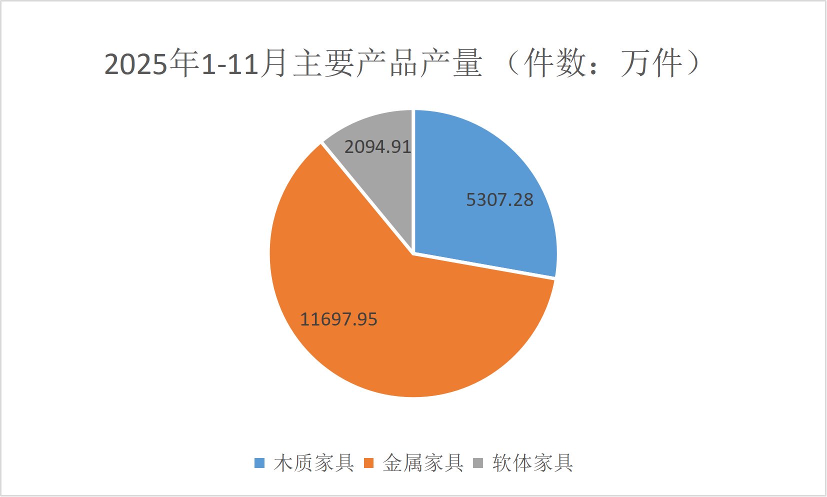 金屬家具1.17億件(11697.95萬件),累計下降13.3%,11月單月完成產量1136.84萬件,下降15.3%;