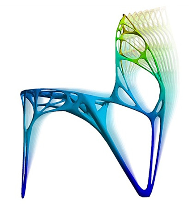 德國設計師Marco Hemmerling 和Ulrich Nether 合作設計的“Generico Chair” ,采用Generative and Additive 模型制作工藝。在外形構建時采用FEM-software 軟件對結構性能、材料屬性、人體工學及加工難度等系數進行綜合分析。從而得出最優(yōu)的數字模型,在保證堅固、穩(wěn)定和舒適程度不變的前提下,減少了體量,并生成了獨特的外形。
