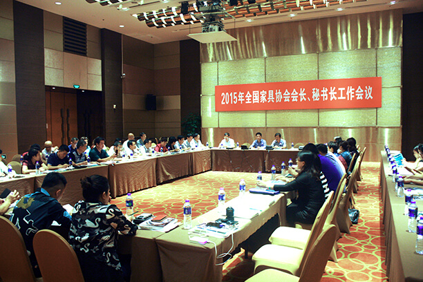 2015年9月8日, 由中國家具協會主辦的2015年全國家具協會會長、秘書長工作會議在上海召開。中國家具協會理事長朱長嶺、副理事長劉金良、副理事長陳寶光、上海博華國際展覽有限公司董事王明亮,以及來自全國各省市家具協會的會長、秘書長共八十余人出席了會議。我協會蔣鴻源理事長、馬志翔秘書長到會并發言。