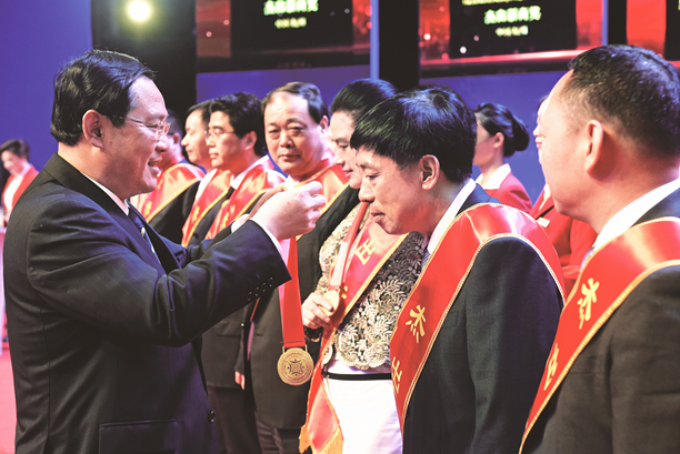 大會舉行了優(yōu)秀浙商頒獎典禮,表彰獲得“杰出浙商獎”“創(chuàng)業(yè)創(chuàng)新獎”“浙商新星獎”的浙商。集團公司董事長倪良正作為20名杰出浙商之一,榮獲“杰出浙商獎”。省委書記夏寶龍在省人民大會堂親切接見了倪良正董事長等獲獎?wù)闵獭J¢L李強欣然為倪良正董事長等杰出浙商頒獎。