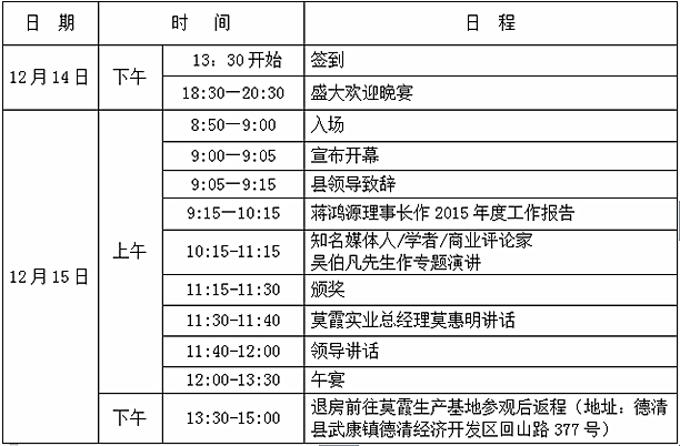 二、會議時間:2015年12月15日9點整(請提前10分鐘入場)