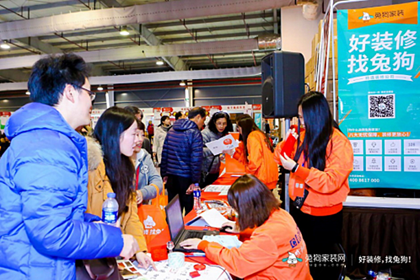 在剛過去的2月,兔狗全國家裝節(jié)席卷了國內(nèi)一二線城市。各城家裝節(jié)的現(xiàn)場,都能看到一群身影全天候在網(wǎng)友服務(wù)處忙碌著——兔狗裝修管家。穿著橘色工作服,看著陽光、熱情的他們平均工作年齡已有3年。