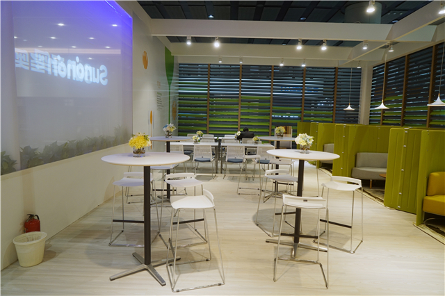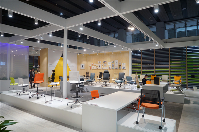 圣奧1000余平方米的展館,就像一個綠色花園,設(shè)計師在展館內(nèi)融入了大型植物造景,辦公家具精品錯落有致地擺放其中,賞心而悅目。向客戶傳達綠色、健康、智能、高效的新型辦公理念的同時,也帶來一場視覺盛宴。