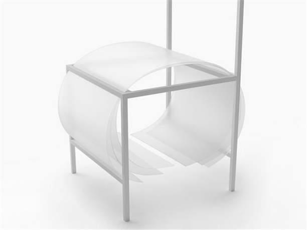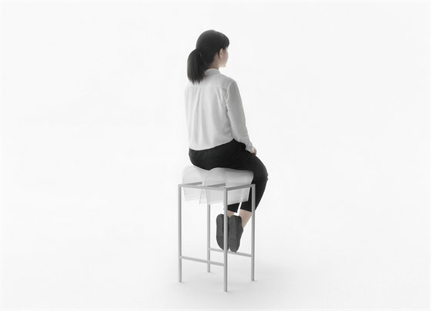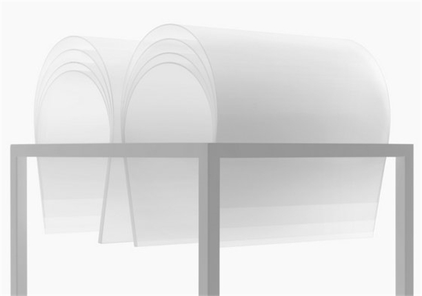 在這一系列的設計中,nendo并未選擇乙烷泡沫、棉花、羽毛或彈簧等傳統填充材料,而是采用了1.5毫米厚的聚碳酸酯板,這種材料的柔軟性可以通過多層相疊以及其被彎曲程度發生相應改變。具體說來,軟墊的柔軟程度可根據薄片層之間的空間大小進行調整,同時剛度隨彎曲度減小而提升。