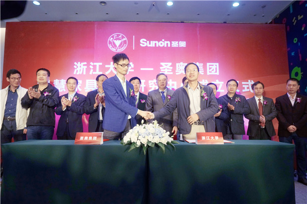 “浙江大學與圣奧聯合成立智慧家具研究中心,將圍繞智能制造、智能設計、智能服務等,開展辦公健康、環保、智能、節能等技術的研究。發揮各自資源優勢,通過校企合作的探索與創新,走出一條以人為本的創新之路。”浙江大學發展委員會副主席陳子辰說。