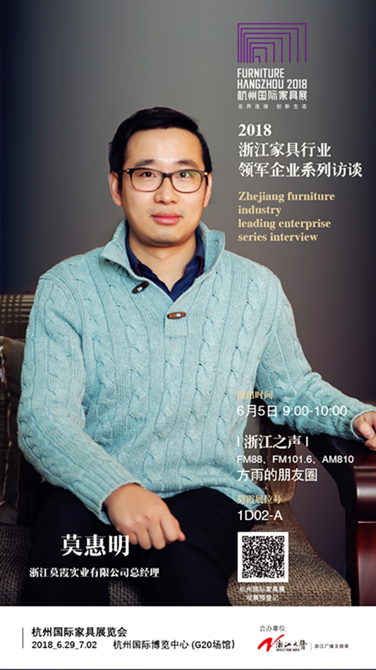 在主持人方雨溫暖的聲音中,杭州家具展&浙江之聲訪談第二期欄目在浙江廣電臺開播。與首期訪談不同,“方雨的朋友圈”以輕松、明快的方式,讓我們了解了浙江莫霞實業有限公司,更讓我們看到了不一樣的總經理莫惠明。