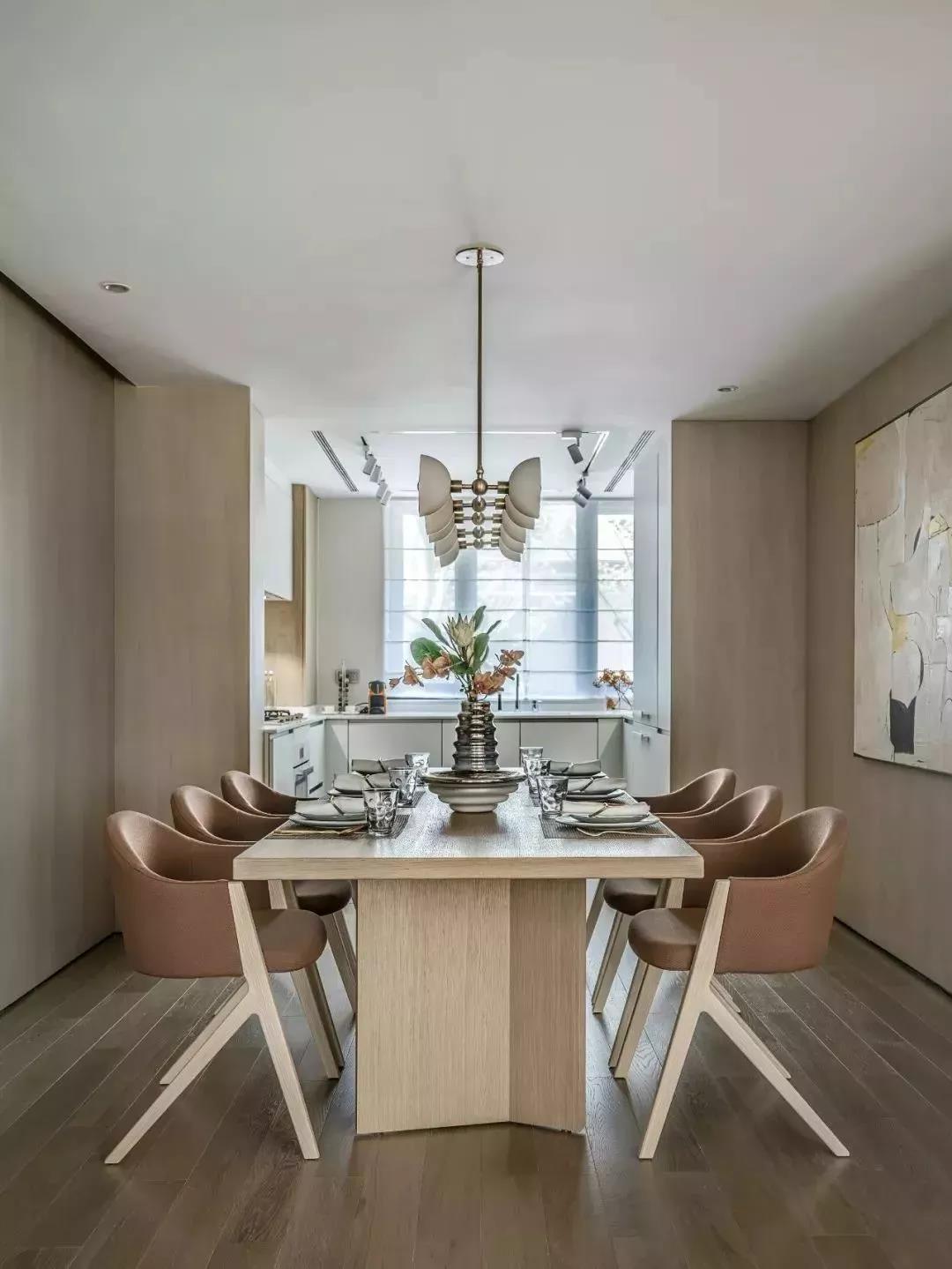 在輕奢風格中,設計師往往采用經典的黑白灰、暖調奶咖色、米杏色與原木色,來呈現優雅大氣的空間格調,在視覺上取得平衡與統一。