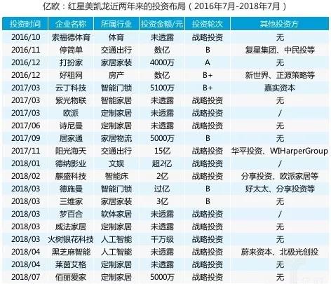 紅星美凱龍近兩年來在定制家居行業(yè)、智能家居以及人工智能行業(yè)的落點較為頻繁,除了在泛家居以外的行業(yè)里,它還注資了體育、交通出行、文娛影視等行業(yè)的創(chuàng)業(yè)公司。難怪有業(yè)內(nèi)人士稱紅星美凱龍已經(jīng)成為了“買買買”的家居企業(yè)代表之一了,簡單粗暴地用“買買買”大刀闊斧地開啟其家居生態(tài)鏈的想象空間。