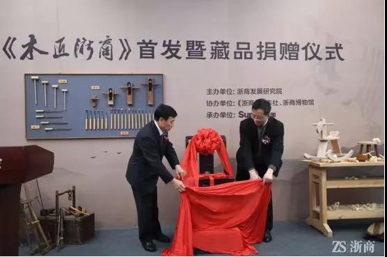 在儀式上,倪良正還向浙商博物館捐贈了他在80年代初期做木匠時打制的南官帽椅,并向浙江大學、浙江工業大學的學生代表及圣奧員工代表贈送《木匠浙商》一書。