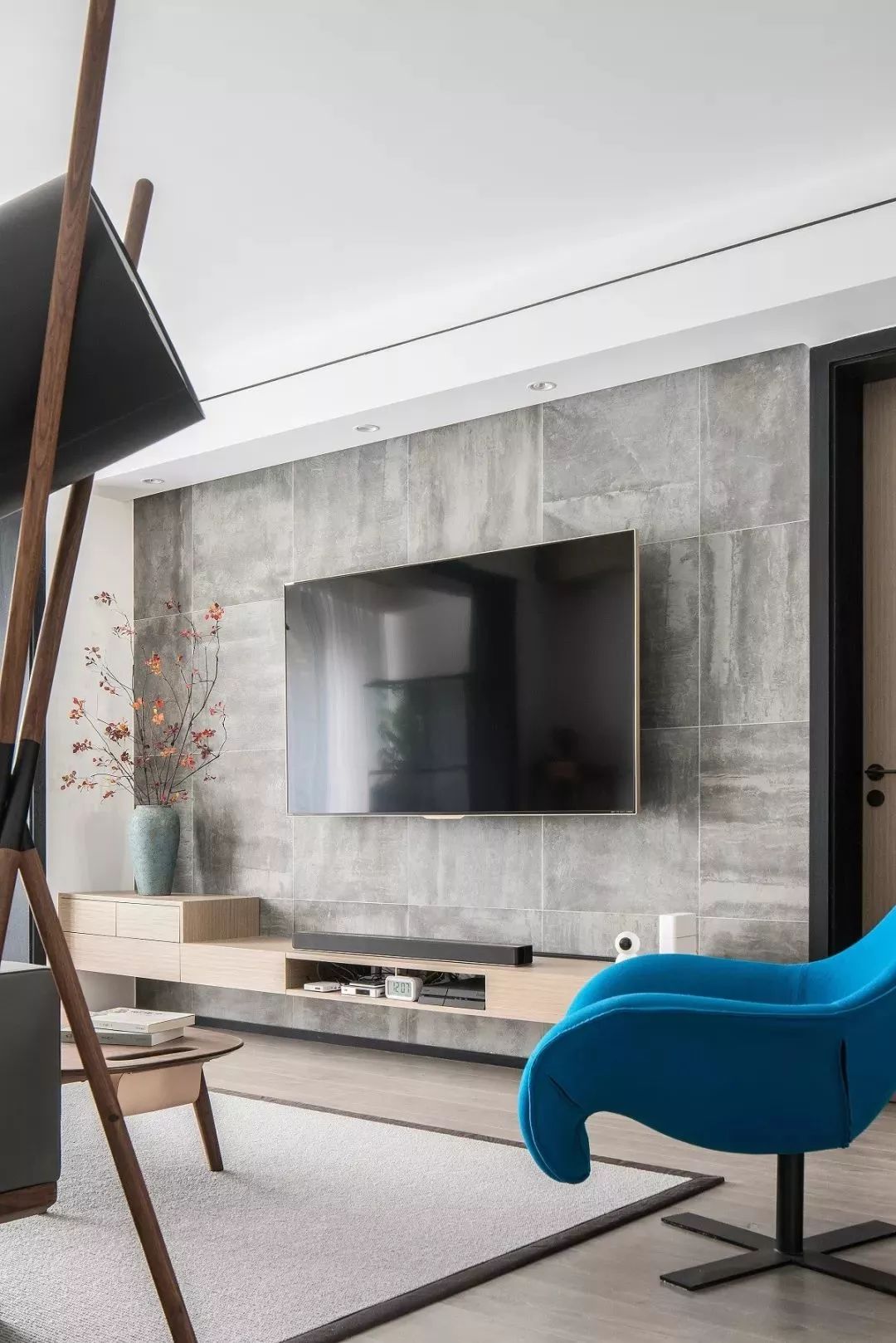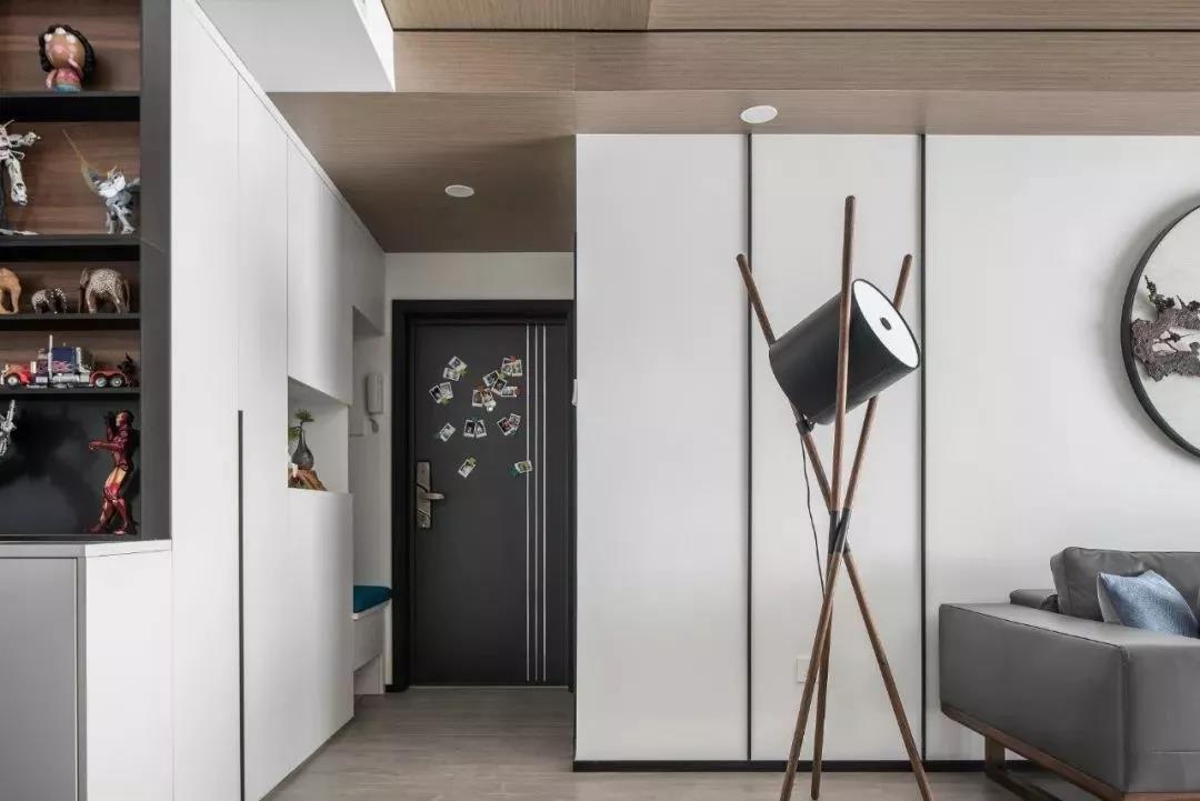 結(jié)合木飾面打造的玄關(guān)墻,
