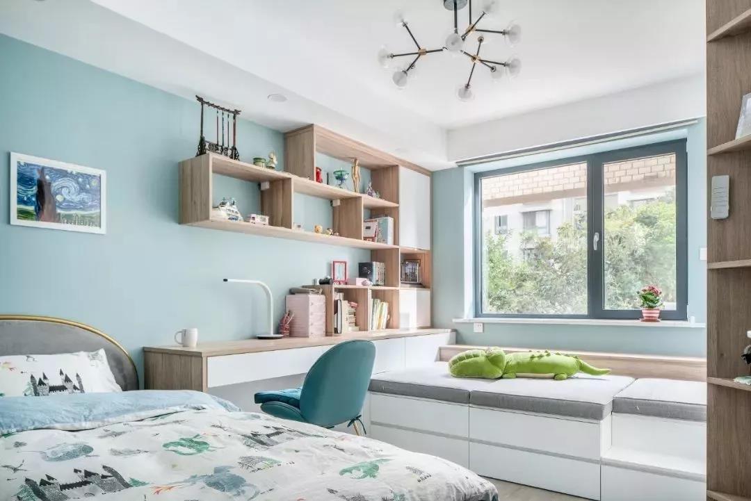 神秘的湖藍色可以給空間增添輕松的氛圍,