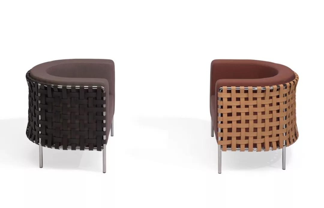 這個(gè)系列將傳統(tǒng)和現(xiàn)代相結(jié)合。鉻鋼管框架支撐起編織的外形,包圍著中央的座椅襯墊,不同元素的碰撞充滿韻味。