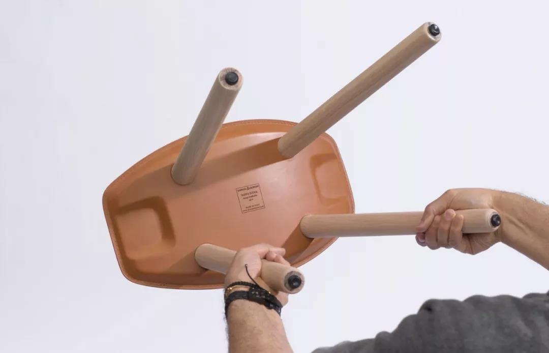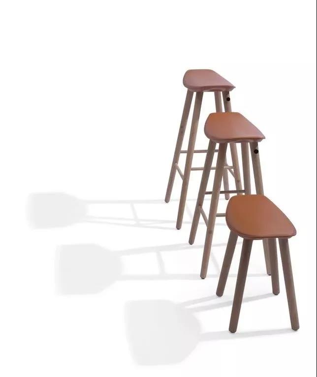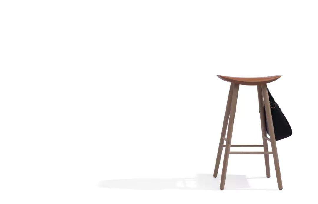 這個(gè)作品有點(diǎn)返璞歸真的意味,Sloyd 系列高腳凳采用天然木材制成,延續(xù)了傳統(tǒng)的極簡風(fēng)格。座椅兩側(cè)微微凹陷便于拿起。其中一條凳腿還裝有金屬掛鉤用來懸掛手提包等物。