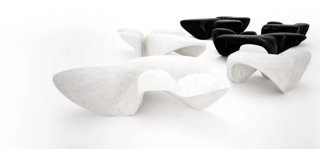 有大理石做成的一體式曲線型家具和也有外觀獨(dú)特、充滿科技感的作品。