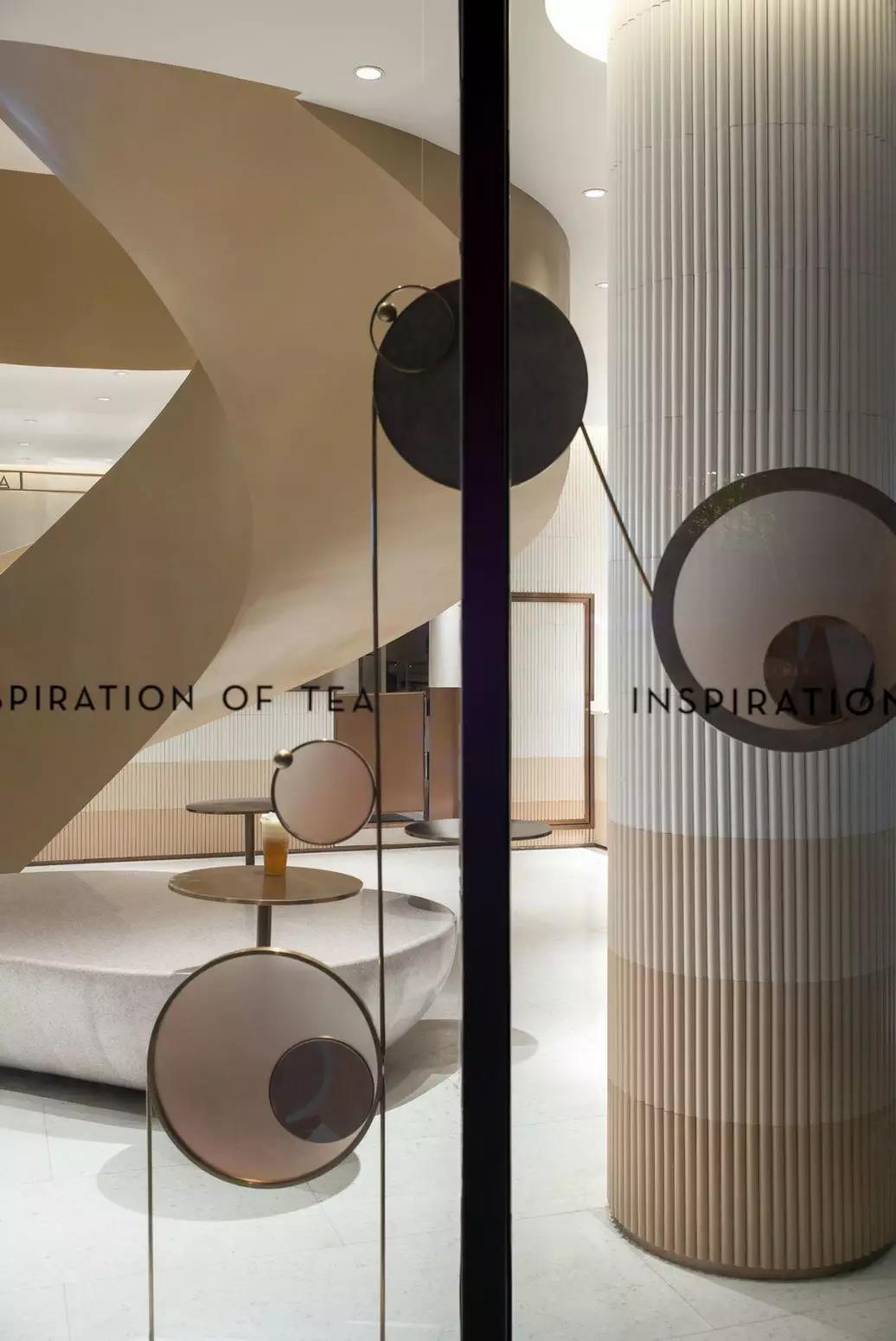 同樣是從消費者對產(chǎn)品的感受入手,這家店更為直接地選取了芝士茶特有的漸變茶色作為溝通點,利用店址本身兩層通透的建筑特點,營造“整個人泡在茶湯里”的奇妙體驗