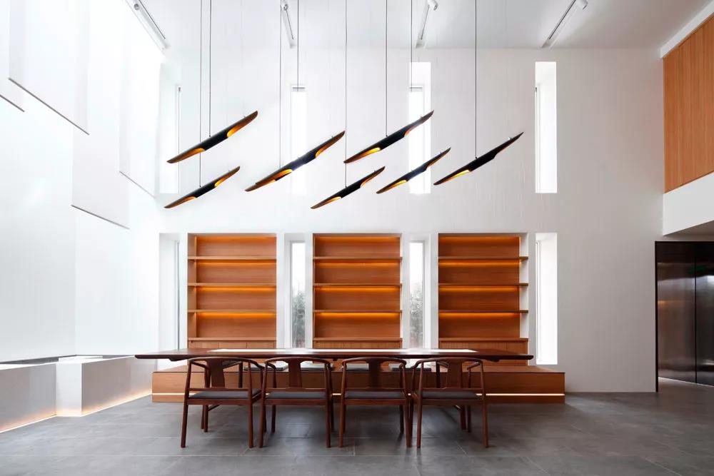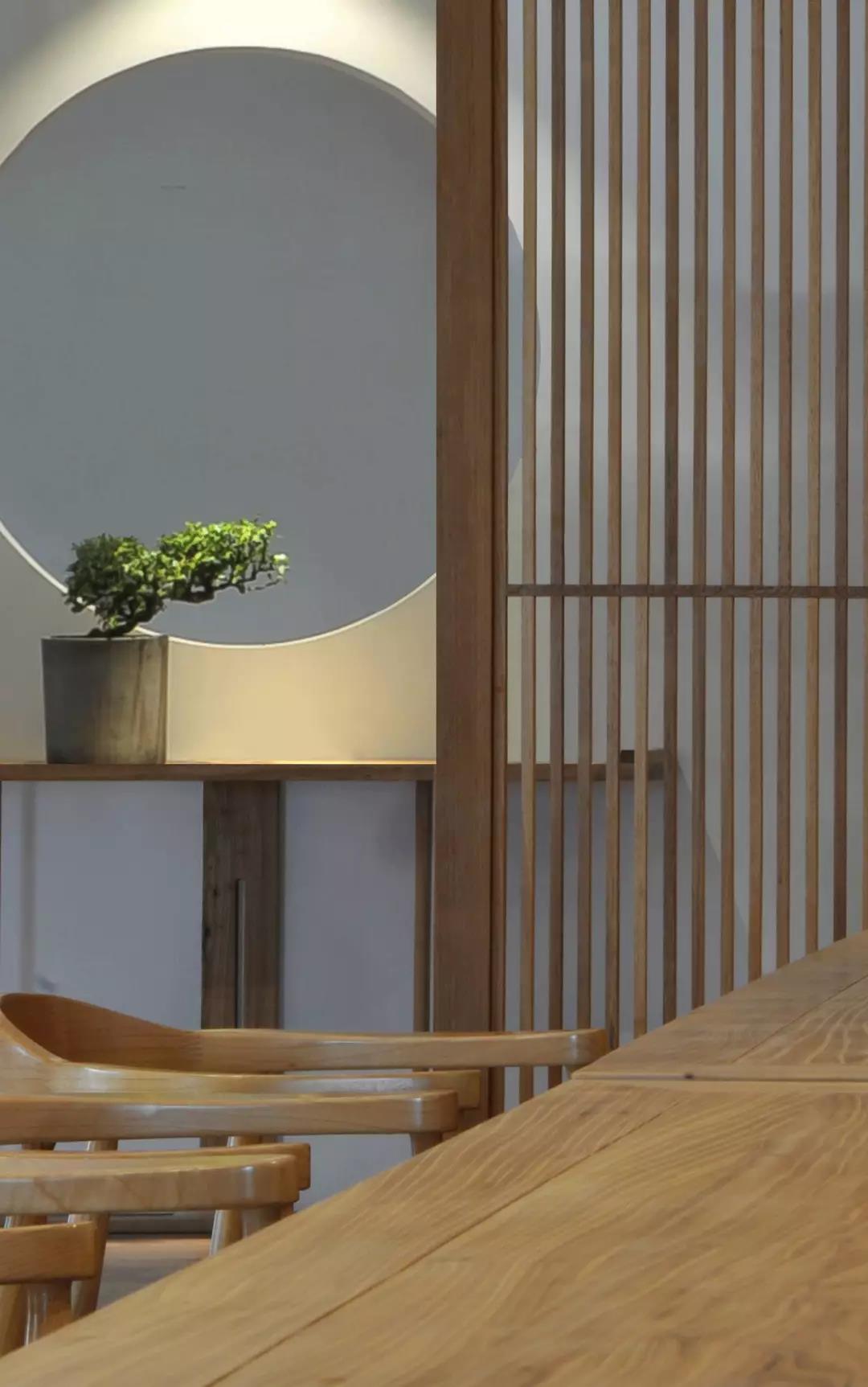 果然·素的內部裝飾,采用了大量的木質元素和留白,體現了空間簡潔之美,純凈的白色和天然的木色,襯托出大道至簡的禪宗精神。