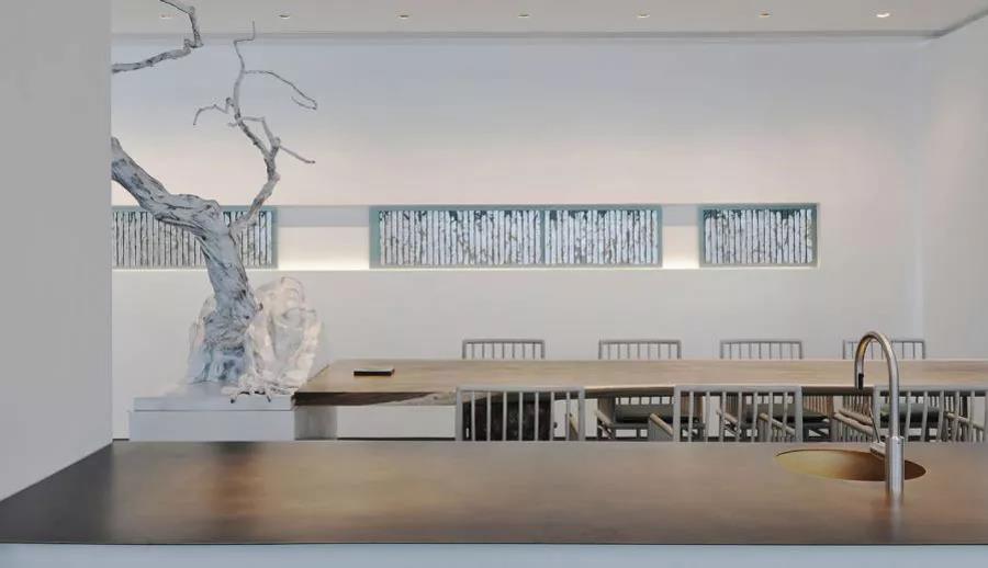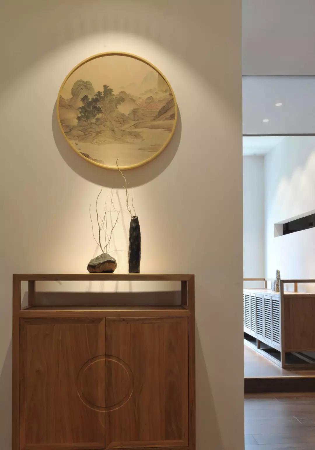 中國文化里講究留白,但是留白並不代表什么都沒有,而是留下充分的想象空間給居住之人。大片的白墻白地磚,穿插著竹子、小景、木桌等傳統的中式風格搭配。在現代化的空間里,硬生生的營造出了新中式的極簡之美。