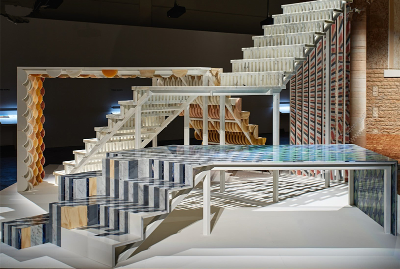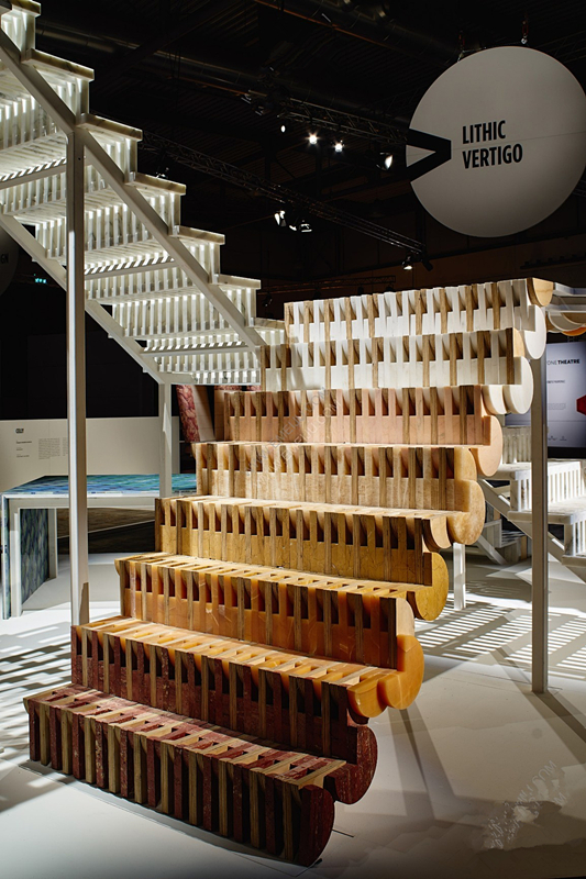 Budri正在展出由Patricia Urquiola創作的裝置Lithic Vertigo展覽,這是一個關于使用石頭的實驗和創意的展覽。
