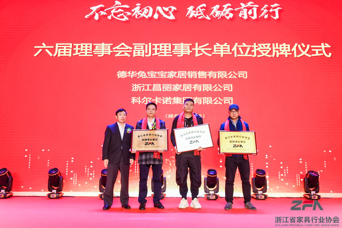 會上,根據(jù)浙江省家具行業(yè)協(xié)會《章程》有關(guān)規(guī)定,在征詢各會員單位意見的基礎(chǔ)上,決定增補(bǔ)德華兔寶寶裝飾新材股份有限公司、浙江昌麗家居有限公司、科爾卡諾集團(tuán)有限公司為六屆理事會副理事長單位。