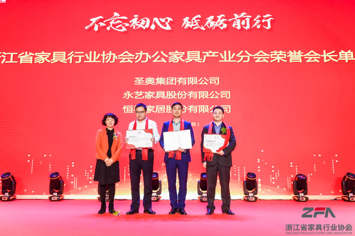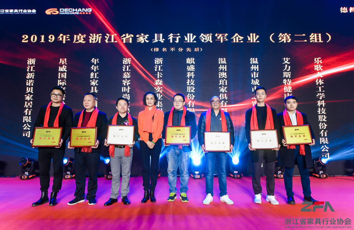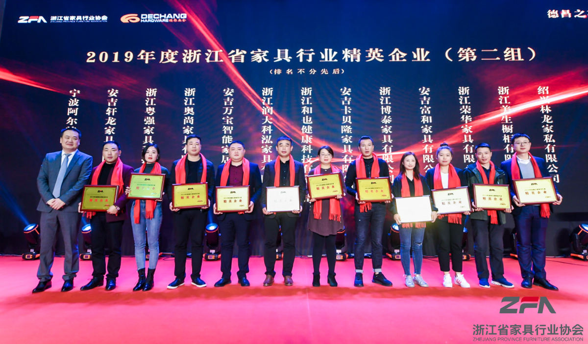晚宴表彰2019年度浙江省家具行業(yè)領(lǐng)軍企業(yè)、杰出企業(yè)、精英企業(yè)、省級優(yōu)秀家具市場并進(jìn)行授牌。