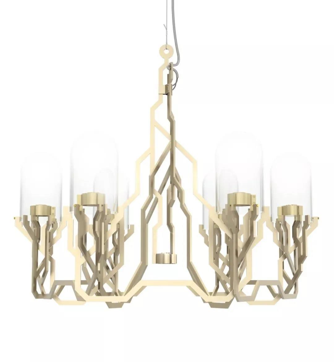 設計雙人組合Kranen / Gille開發了植物枝形吊燈,它在不可預見的方向上生長和伸展樹枝。 靈感來自于Karl Blossfeldt植物攝影的線性圖案,輪廓遵循太陽親吻樹枝的解剖結構,帶有金色光芒,匯聚成光亮的圓頂。