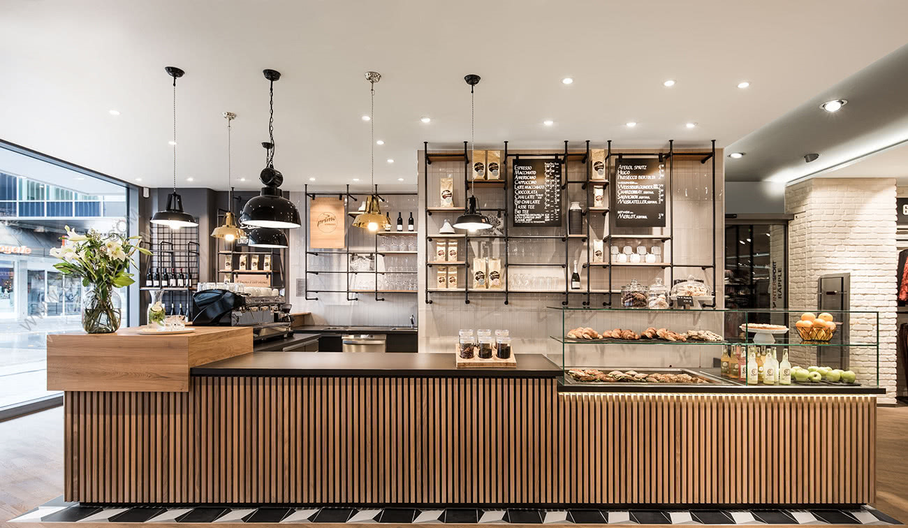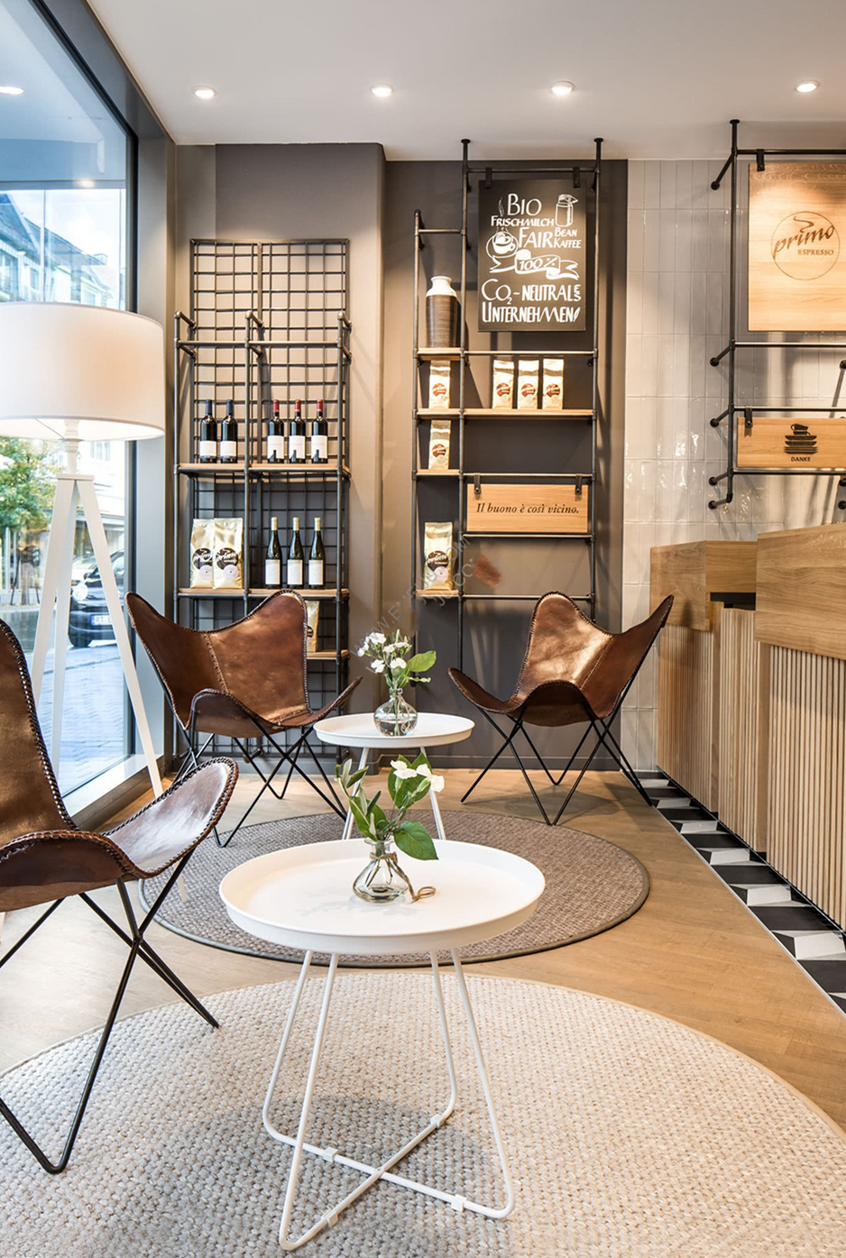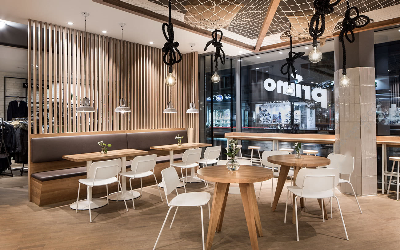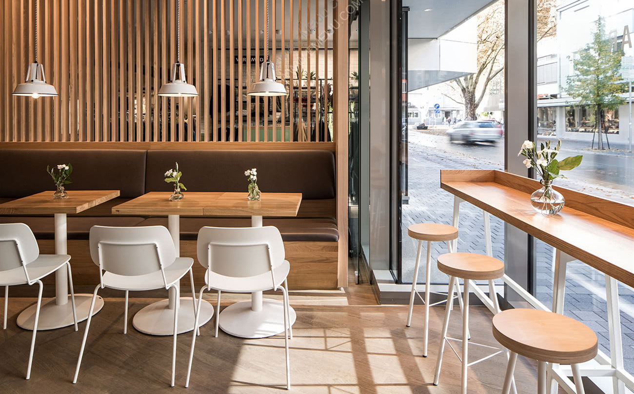 Primo Cafe Bar餐飲空間設(shè)計(jì)代表著高品質(zhì)的咖啡,意大利的生活方式和可持續(xù)的思維定勢。秉承這一品牌哲學(xué)的精神,創(chuàng)造了一種以天然材料和細(xì)節(jié)為中心的真實(shí)室內(nèi)設(shè)計(jì)理念。該咖啡館餐飲空間設(shè)計(jì)是在圖賓根的Zinser時(shí)尚商店中實(shí)現(xiàn)的。它位于步行區(qū),不僅吸引了外界的人們,還為商店的零售客戶創(chuàng)造了價(jià)值。連續(xù)的玻璃幕墻為行人展現(xiàn)出溫暖的氣氛,在光和材料的共生下,使他們想品嘗咖啡。