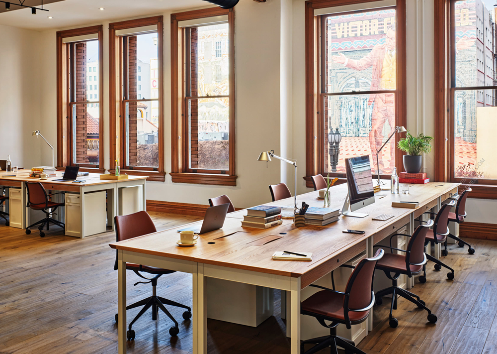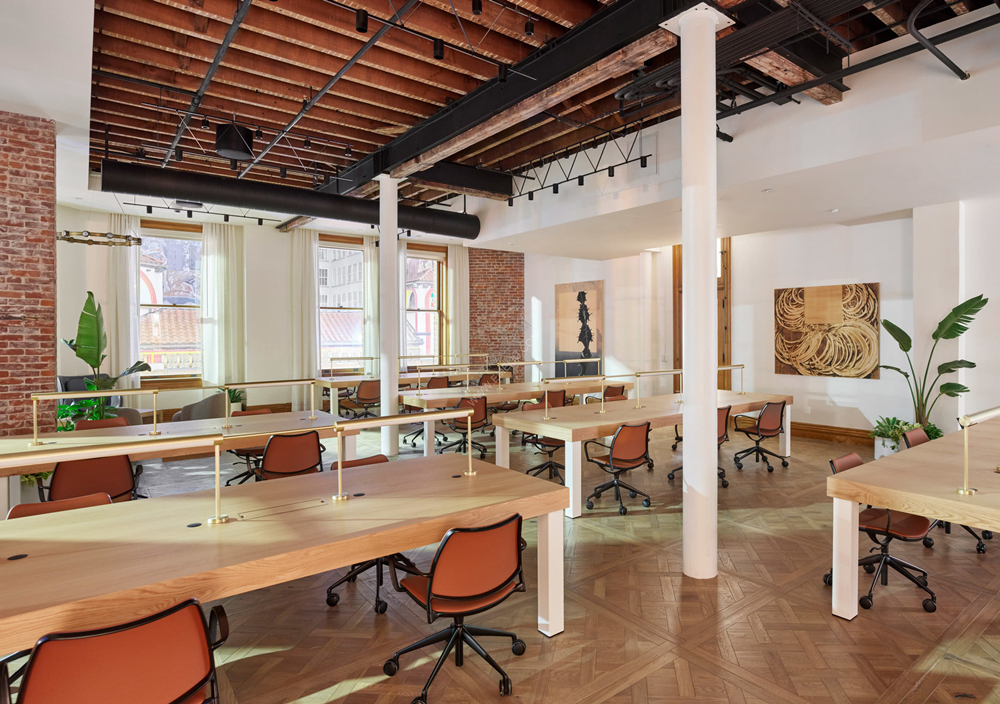 該空間占地2,323平方米,提供公用工作區,私人工作室,會議室,電話亭,休息室,健康室以及咖啡廳和酒吧。該辦公室占據了布拉德伯里大樓的整個第二層,這座五層樓的建筑可以追溯到1893年。該建筑由礦業大亨Lewis L Bradbury委托建造,由制圖員George Wyman設計,該建筑師借鑒了建筑師Sumner Hunt的初步計劃。