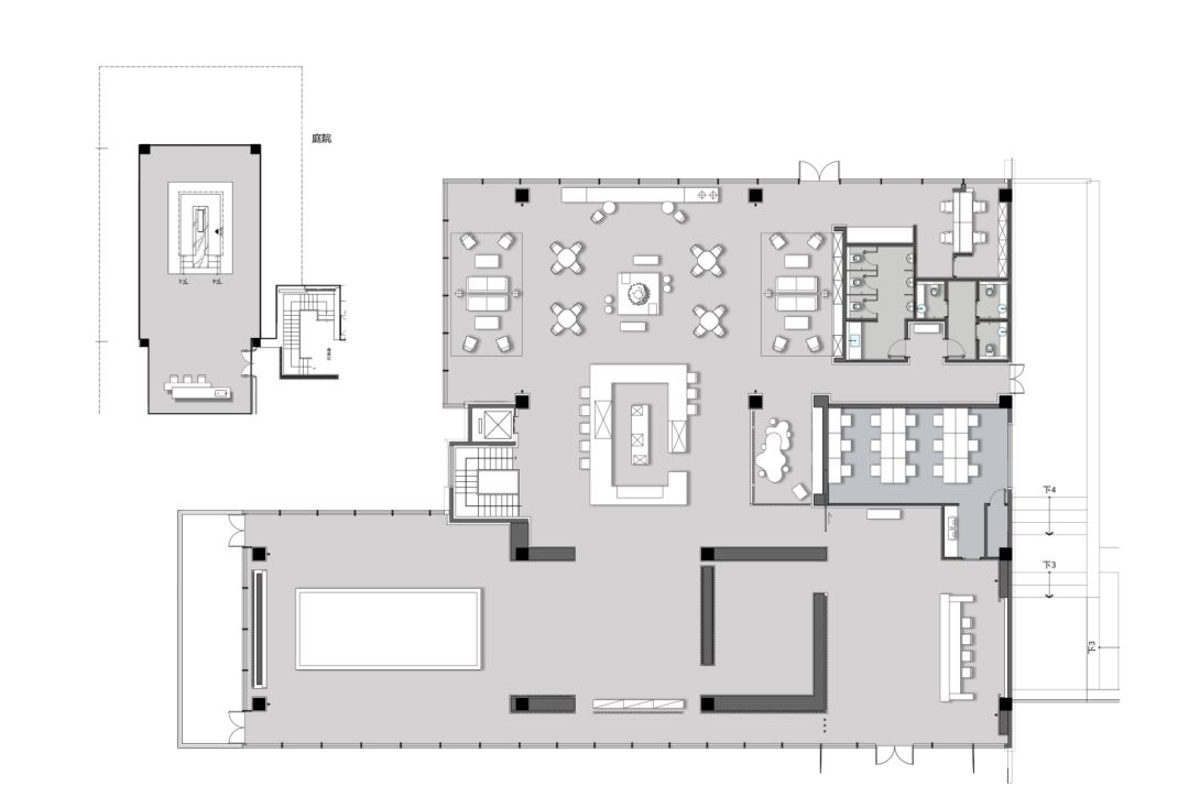 —1F景觀架空區成為一個由外部景觀世界進入內在的過渡區域,木式柵格門打造半開放式空間,簡化了采光和人工照明整體變得安靜而質樸,在這里最大程度的與周圍自然相互親近,于空間中追隨陽光與季節的變化,感受時間的步調。