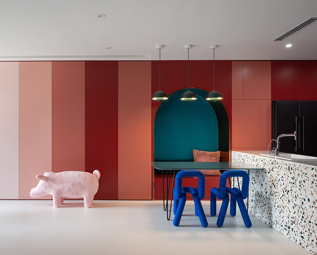 滿足單身公寓的獨居特性,同時留有聚會空間。充分的景觀展示窗,搭配電動遮陽系統。