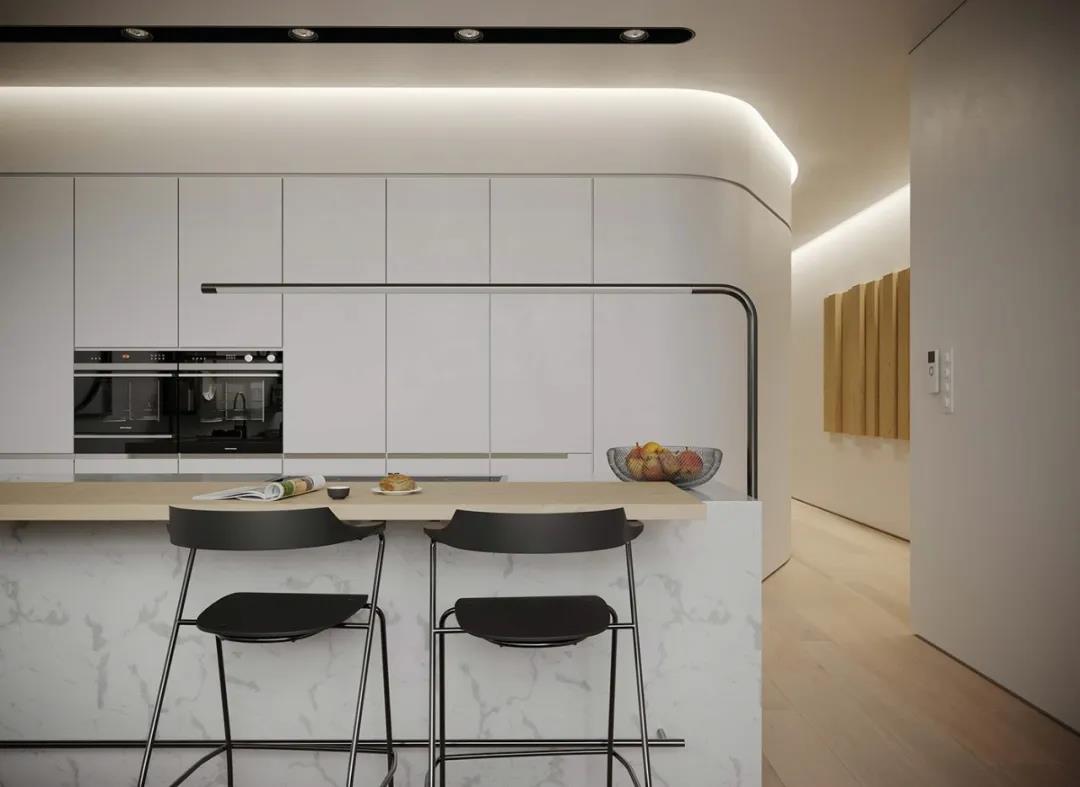 如果只用一個詞來描述房子,流動就能很好地描述它,因為這三個空隙或院落完美地流入和流出了室內。干凈利落的風格基調,間以圓弧造型的點綴,譜寫當代設計美學的完美樂章。如果只用一個詞來形容房屋,那么流動就很容易做到公平