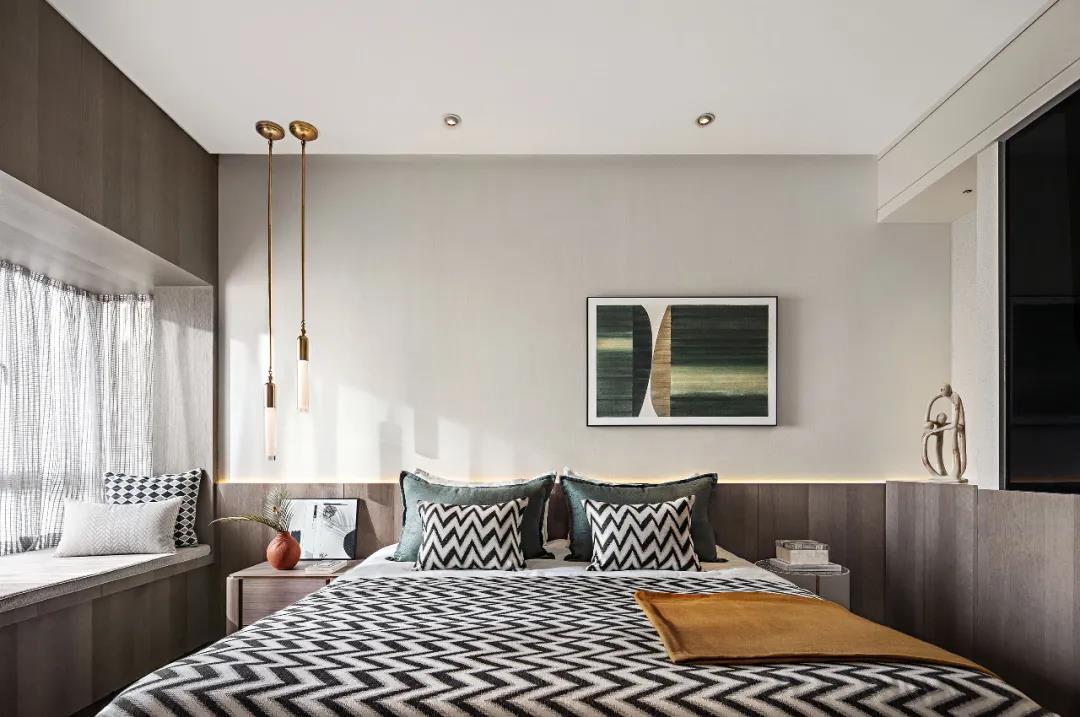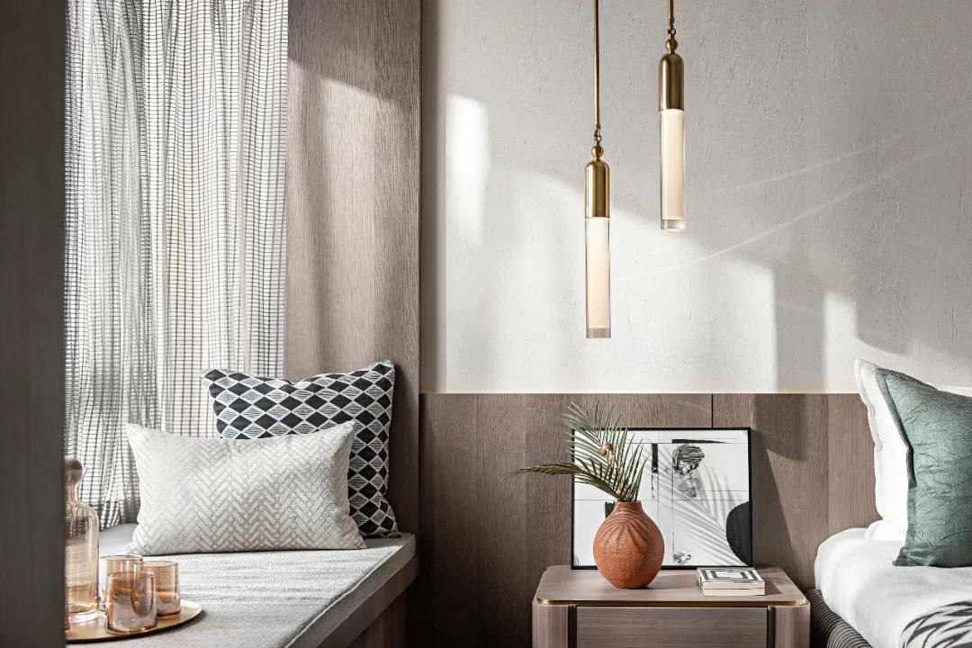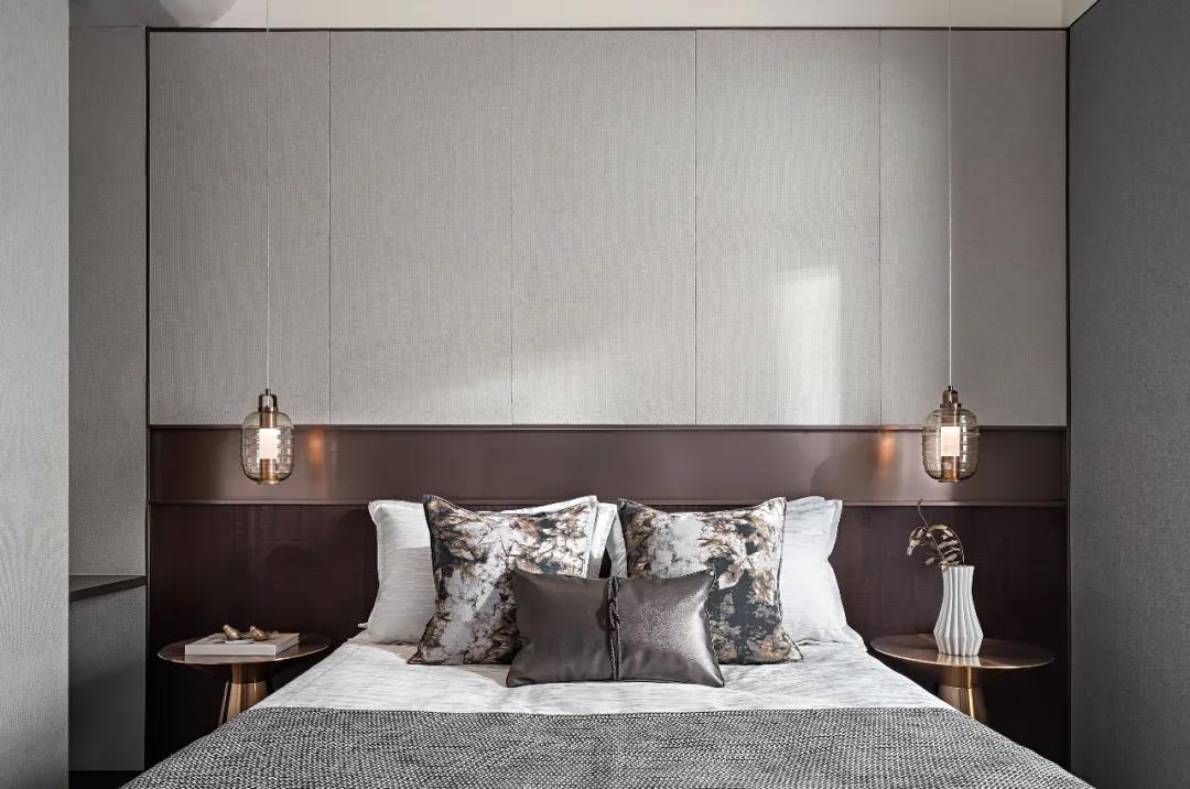 次臥的意境凝練著屬于深秋的美,于低調的表達中緩緩呈演出高雅的精神魅力。邊桌、吊燈、掛畫等精致軟飾的運用,為空間增添一份靈動,也彰顯出居住者一定的生活品味。