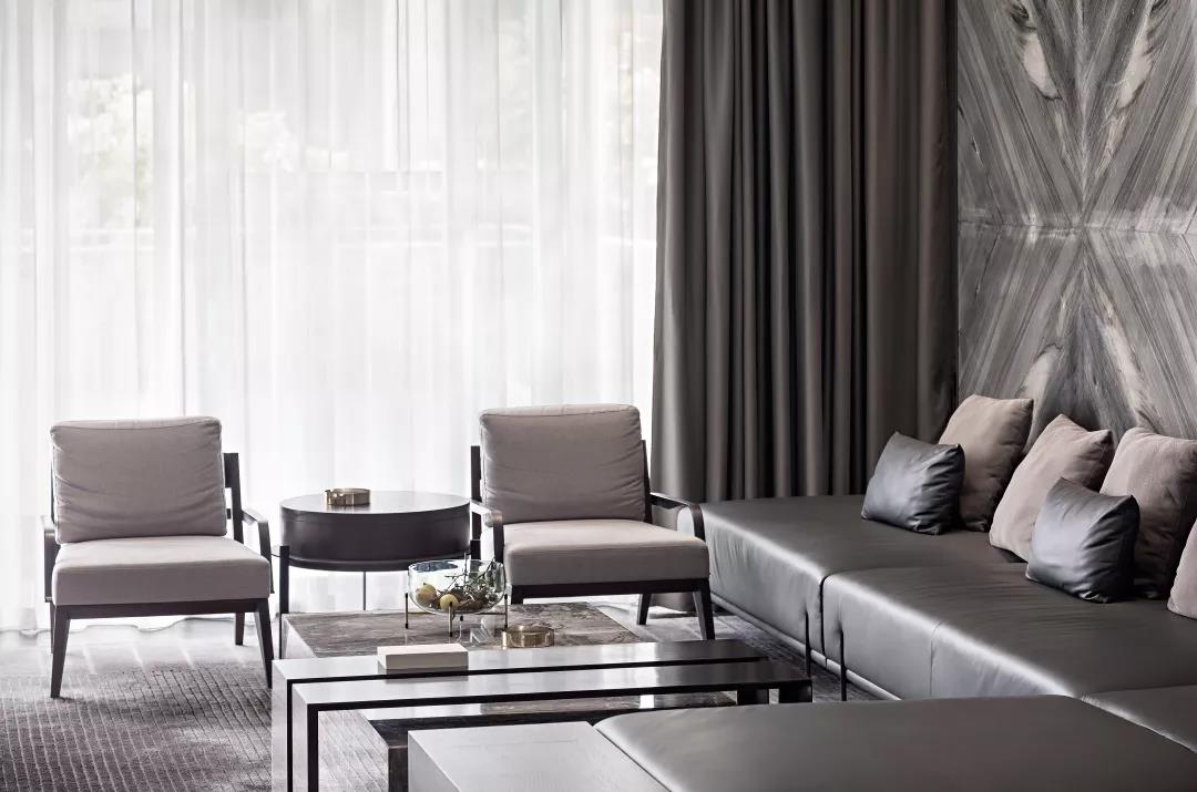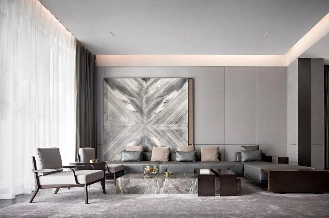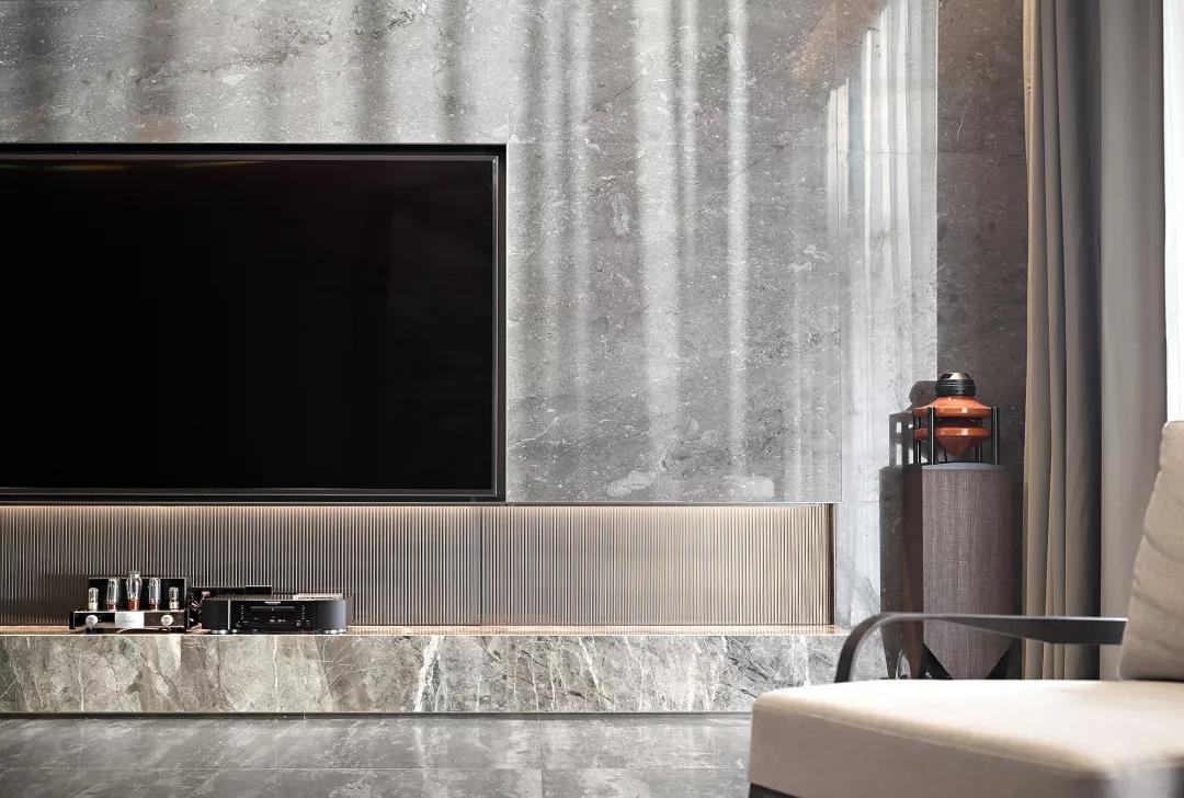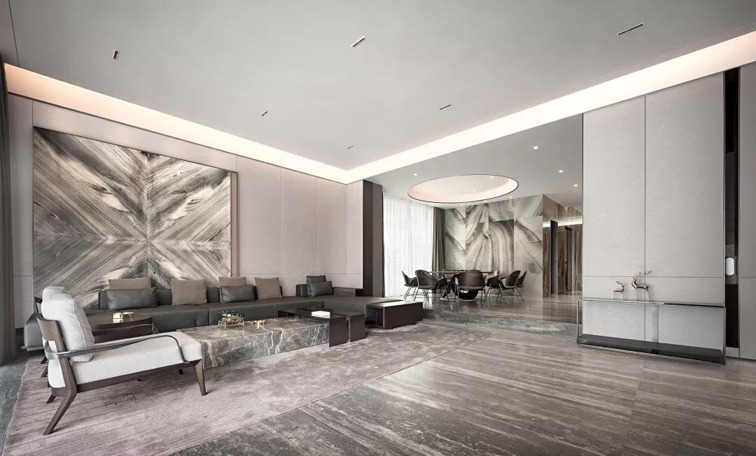 進入客廳,大理石背景為客廳的視覺焦點,木材的應用更是起到了點睛之筆的作用。無論是場景的塑造、陳設的布置,亦或是細節的刻畫,都旨在更好地表達高品質生活方式,以及彰顯高品質的居家態度。
