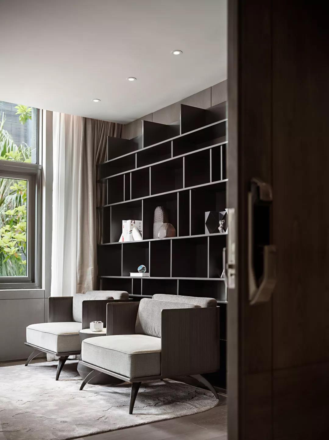 設計師以顯著的現代極簡奢侈風格打造這套位于后海的6層別墅,運用莫蘭迪色系演繹空間奢華格調,同時注重對每層空間合理的功能區域劃分,講究灰度的和諧過度,傳達一種超然的體會與感受,融入于居所,不止于居所。用簡潔的設計語言、高級的材質及藝術的陳設布置來強調空間至臻至簡的主題。