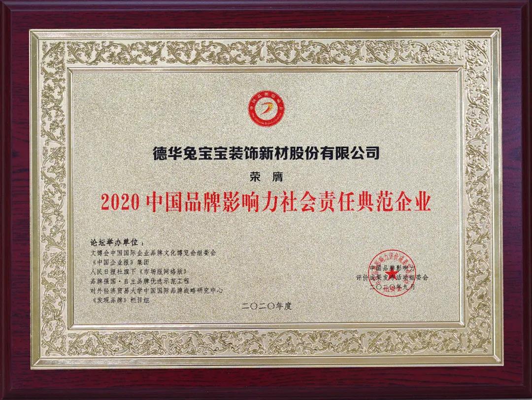 品牌影響力是企業開拓市場、贏得市場并獲得利潤的能力,正日漸成為左右用戶選擇消費的重要因素。兔寶寶自創立以來,一路踐行著“厚德敬業”的核心價值觀,以實際行動履行社會責任,加強了社會各界對兔寶寶品牌的認知,使兔寶寶逐漸成為行業內社會責任典范品牌。抗疫期間,兔寶寶積極承擔社會責任,在得知西安“小湯山”醫院、湖北十堰竹溪分院改建等項目物資需求信息后,公司積極支持當地經銷商做出快速響應,組織貨源,完成物資和車輛的緊急調配,爭分奪秒連夜將物資裝車、交付、卸貨,助力于醫院建設快速投入使用。除此之外,公司向德清縣紅十字會捐贈500萬元人民幣,用于防疫物資的采購等。這充分展現了一個企業的責任與擔當,獲得該獎項可謂是實至名歸。