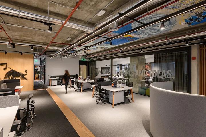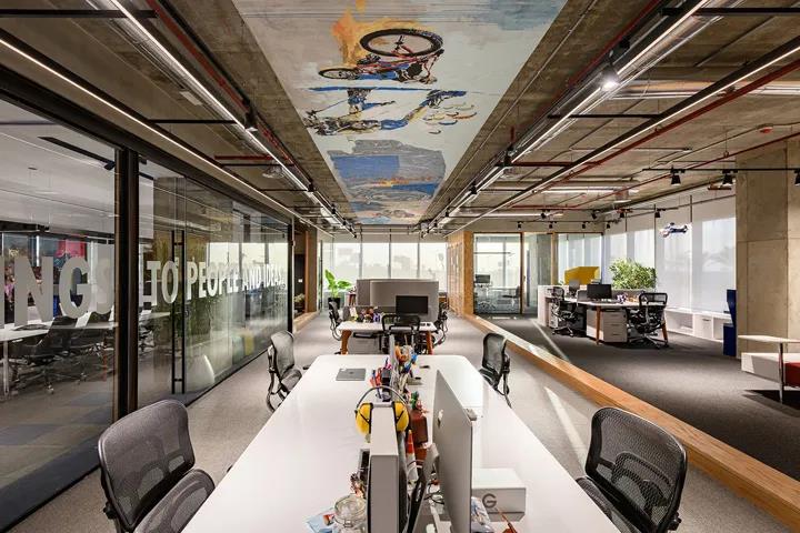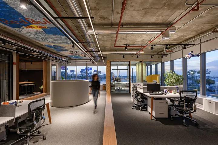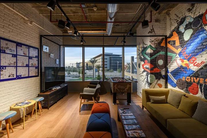 功能飲料品牌紅牛Red Bull,在埃及開羅新設了一處辦公室。粗獷的混凝土樓板映襯著各式極限運動的涂鴉創作,帶來強烈的視覺沖擊和滿滿激情能量。本案由建筑和室內設計公司Eklego Design設計團隊打造。