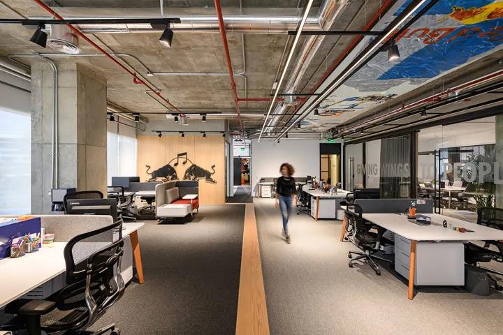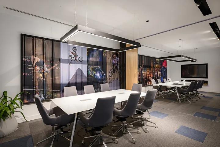 本案的設計理念正是基于紅牛這種核心價值觀的體現,即自豪感、勇氣、創造力和創新精神。開放的平面布局,處處彰顯極限運動的創作畫面,瞬間給人們帶來沉浸式感官體驗,激發心底的活力。設計團隊由此創建了一個強化品牌精神的辦公空間;一個將紅牛多元文化融合在空間設計中的辦公環境,一個讓人激情迸發的能量帝國。