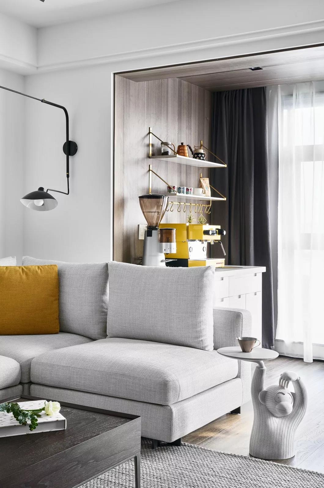 客廳背景是干凈素然的大白墻,沙發(fā)旁是太太鐘愛(ài)的咖啡機(jī),當(dāng)你從繁復(fù)累贅的都市中轉(zhuǎn)身,迎接你的是一個(gè)完全包容和簡(jiǎn)樸的棲息空間,從進(jìn)門那一刻便收獲一份豁然的心境。