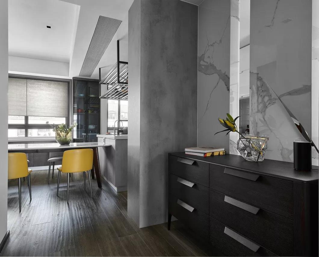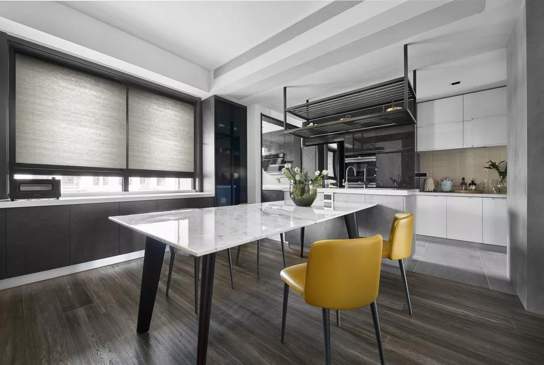 整個(gè)設(shè)計(jì)的重點(diǎn)是餐廳區(qū)域,作為一日三餐的產(chǎn)生地—廚房,總是被與生活、親情、友情聯(lián)系在一起,成為了一個(gè)家庭的溫度所在。