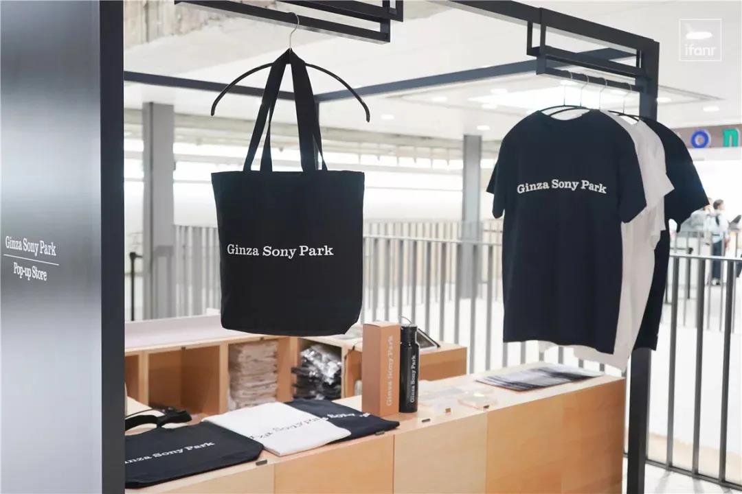 除了 THE CONVENI,索尼也在這一層里出售Sony Park 的紀(jì)念品,不過相比于商品琳瑯滿目的前者,索尼的紀(jì)念品商店僅有一個(gè)攤位。攤位出售著Sony Park的T恤、帆布袋、水壺、貼紙以及還有從Sony Building拆卸下來的百葉窗小塊。