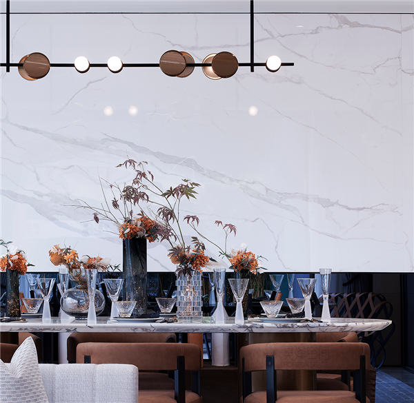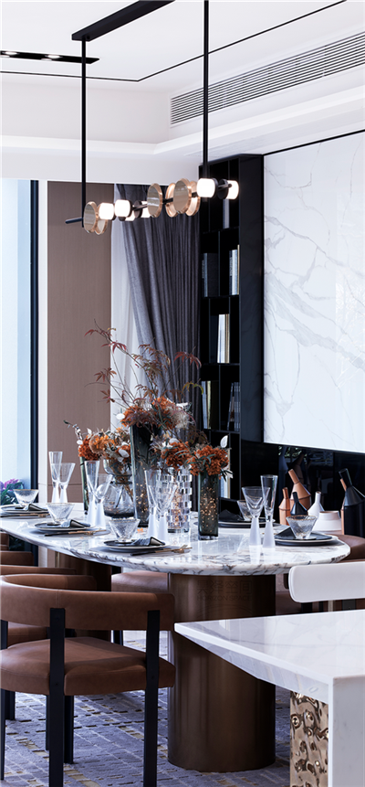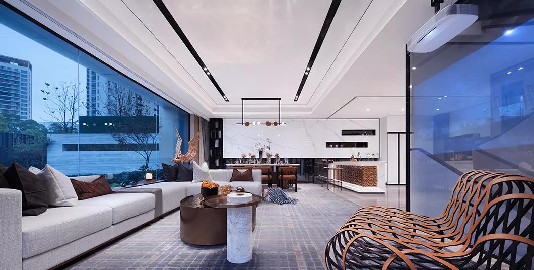 客餐廳采用大橫廳的設計,大空間尺度的客廳和超長的景觀陽臺完美融合。