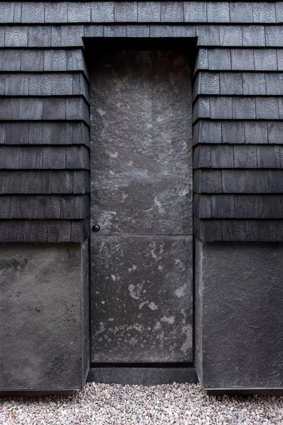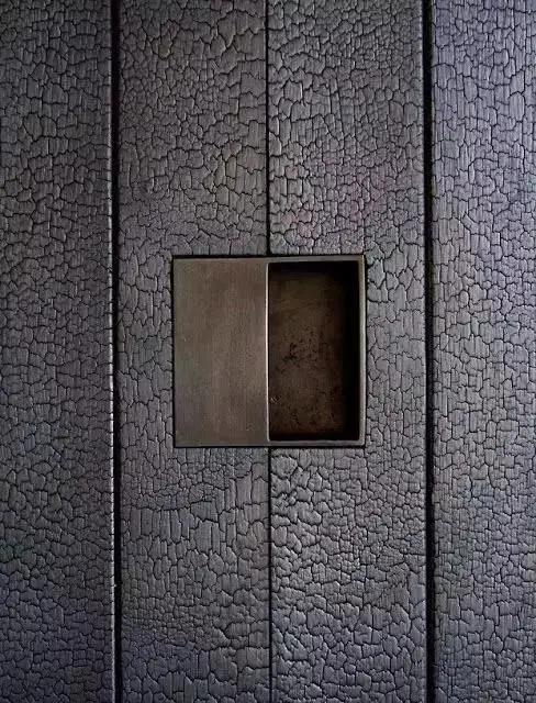 燒杉板(Shou-Sugi-Ban焼き杉)是日本傳統的木質材料之一。木材在烈火燃燒之后,經過特殊處理,從而得到黑亮如漆、顏色純粹且堅固的燒杉板。
