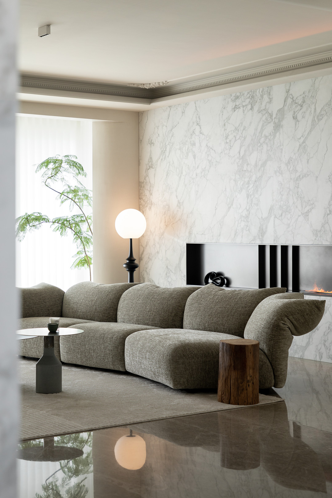 低飽和度的空間背景讓自然光多次漫反射后愈發柔和,無主燈結構的間接光環境構筑溫馨質感。